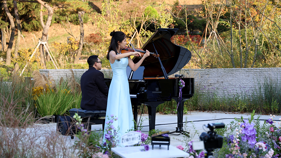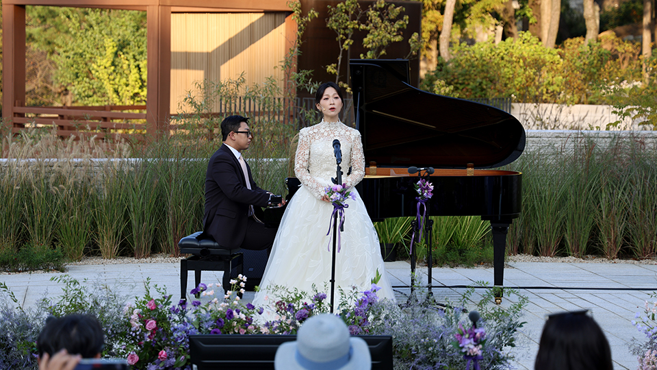 2024-10-24깊어가는 가을, 용인공원 아너스톤의 음악회가 개최되었습니다. 오페라 버스킹 프로그램으로 화제를 모은 <당신이 있는 그곳, 오페라 하우스(시즌2)>와 함께한 이번 음악회는 용인공원 화목정원에서 가을의 만연한 정취를 배경으로 진행되었습니다.