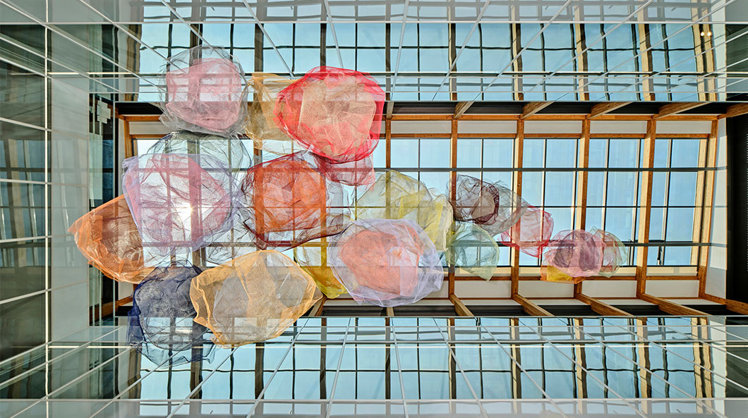 2024-11-07아너스톤 1층에 마련된 갤러리의 오픈을 기념하여 영국 런던에서 활동하는 라나베굼과의 콜라보 작품 'Clouds'를 소개합니다. 라나베굼의 작품은 이슬람 예술과 건축의 기하학적인 요소와 다채로운 색상에서 영감을 받아 단단한 메쉬망으로 부드러운 모양의 버블볼을 만들어내는 것이 특징입니다. 아너스톤의 중정을 타고 흐르는 빛과 상호반응하며 아른거리는 몽환적인 dappled light의 모습을 감상해 보세요.