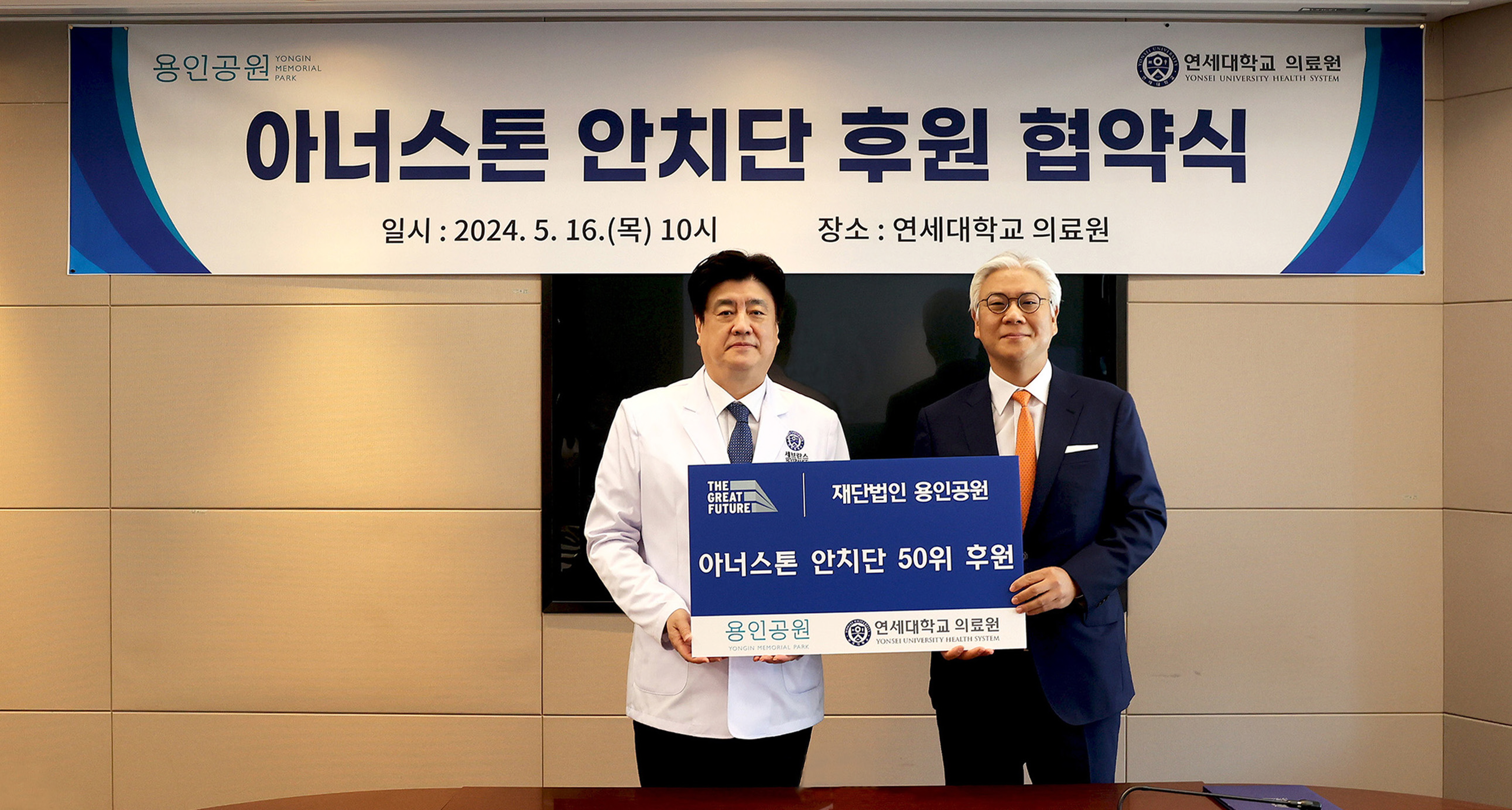 재단법인 용인공원과 연세의료원은 나눔의 가치를 실천하기 위한 아너스톤 안치단 기부 후원 협약을 지난 16일 체결했다.