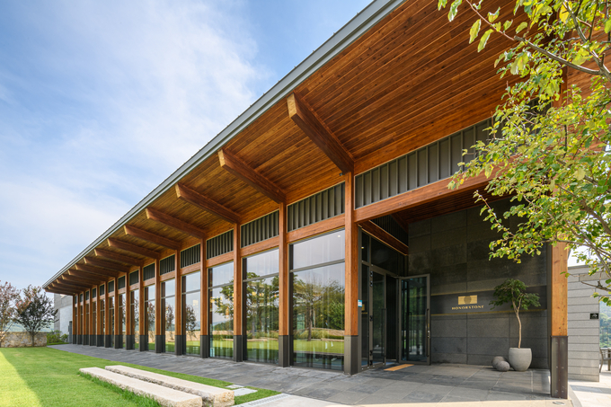 천연나무의 보와 열주들의 반복된 디자인은 공간에 깊이를 더해주고 있으며, 웅장하고 고결한 분위기를 자아낸다. 드높은 하늘의 창은 사시사철 햇살을 따뜻하게 드리워 주면서 청명한 하늘을 그대로 비춰준다. 중앙의 열린 구조는 시원한 개방감과 인상적인 공간감을 느끼게 한다. 절제된 재료 사용으로 최대한 자연이 드러나고 느껴지도록 디자인했다.