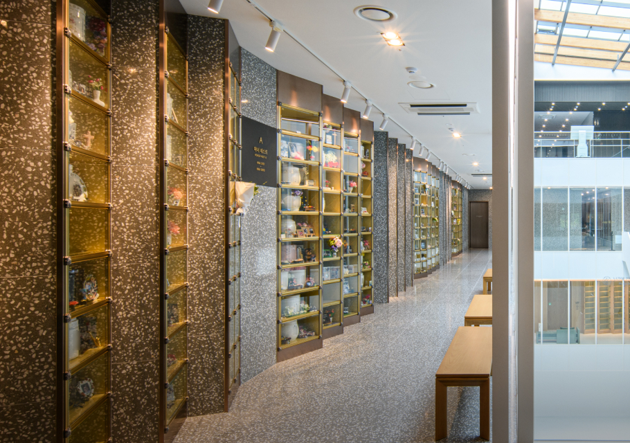 하늘을 바라보는 큰 창으로 들어오는 채광이 탁 트인 개방감을 주고 테마별 종교실이 구성되어 있어 원하시는 의식으로 추모를 드릴 수 있습니다.