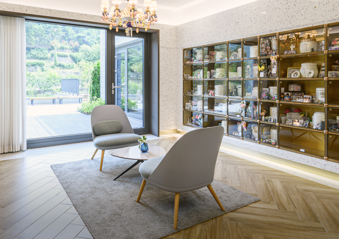 오롯이 독립된 봉안실과 한 발짝 문을 나서면 대자연을 마주할 수 있는 전용 테라스, 눈높이에 맞춰진 봉안단이 안온하고 경건하게 유족들의 마음을 감싸드립니다.